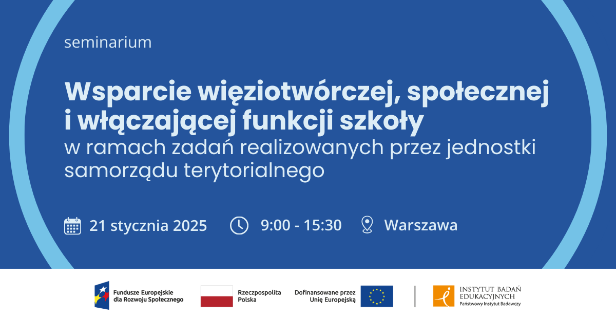 Instytut Badań Edukacyjnych – Państwowy Instytut Badawczy serdecznie zaprasza przedstawicieli jednostek samorządu terytorialnego (JST) do udziału w seminarium konsultacyjnym.