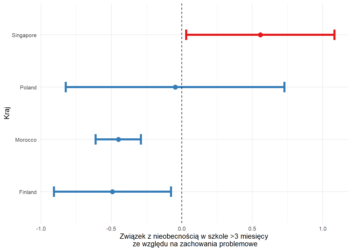 Niemniej jednak chcemy zbadać, czy SES przewiduje zachowania problemowe w tych 4 krajach.
