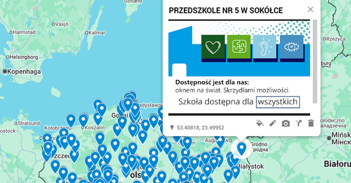 Interaktywna mapa szkół i przedszkoli w projekcie "Szkoła dostępna dla wszystkich"