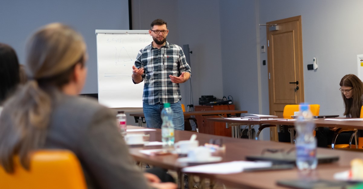 Trener Akademii Retoryki Jakub Podgajnik zdradził uczestnikom jak radzić sobie z tremą przed wystąpieniami publicznymi, analizował sposoby posługiwania się głosem oraz wskazywał, jak mowa ciała wpływa na wizerunek i ogólny odbiór słuchacza.