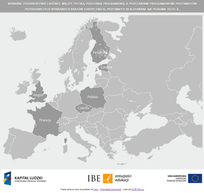 W badaniu porównano zapisy polskiej podstawy przedmiotów przyrodniczych (biologia, chemia, fizyka, geografia) dla III i IV etapu edukacyjnego (gimnazjum oraz dla I klasy szkoły ponadgimnazjalnej w zakresie podstawowym) z analogicznymi dokumentami z Anglii, Czech, Estonii, Finlandii i Francji. Dobierając kraje do porównań, kierowano się wynikami badania PISA w części przyrodniczej z 2006 roku, wysokością PKB oraz położeniem goeograficznym kraju.