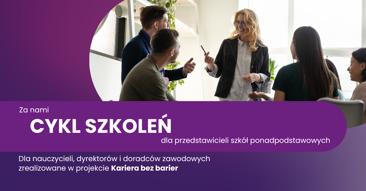 Zakończyliśmy cykl szkoleń w projekcie "Kariera bez Barier", w którym udział wzięło blisko 1200 nauczycieli, dyrektorów i doradców zawodowych. Uczestnicy zdobyli narzędzia do wspierania uczniów.