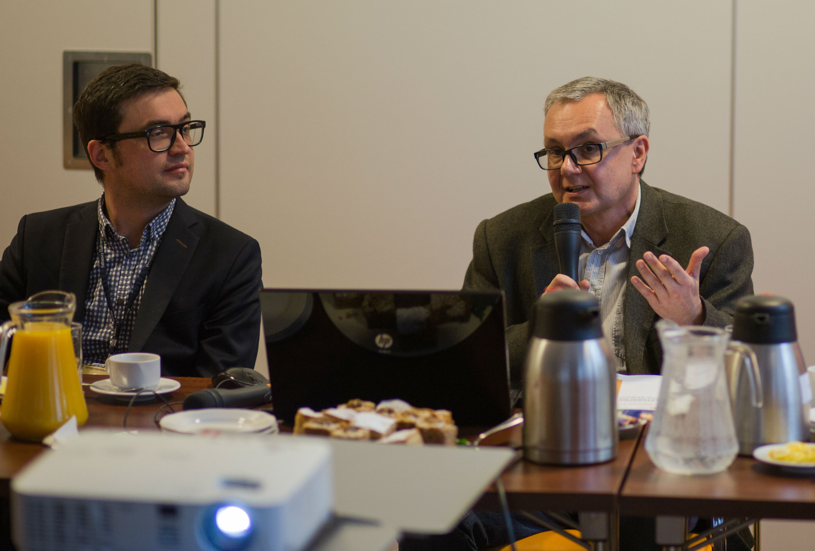 (opis: Dr Marcin Smolik, dyrektor CKE i prof. Krzysztof Biedrzycki, lider Pracowni Języka Polskiego IBE. Fot. arch. IBE)